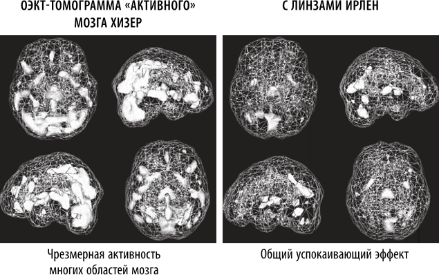 Когда мы встретились с Хизер через две недели, она буквально сияла. С линзами Ирлен ее сосредоточенность вернулась, тревога улеглась, а настроение улучшилось. Ее первая томограмма указывала на чрезмерную активность, но линзы Ирлен помогли значительно успокоить ее мозг.