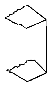 Особенно существенно подчеркнуть, что уже в области контактных тактильных ощущений на основе отображения движения возникает свой "кинетический эффект глубины", т. е. формируется трехмерная пространственная схема, включающая в себя элементы дистантной проекции психического изображения. В наших экспериментах было показано, что такая трехмерная схема возникает при отображении последовательного движения сначала одной грани куба, затем перпендикулярного к ней ребра, а затем противоположной грани по ограниченному участку кожи пальца (рис. 2). Как показывают рисунки и словесные отчеты испытуемых, в этих условиях формируется адекватное отражение третьего измерения, развернутости плоскостей в трехмерном пространстве. В результате симультанирования последовательных временных компонентов ощущений движения образы плоскостей, отдельных друг от друга и от рецепторной поверхности "третьим измерением", включаются в единую симультанную пространственную структуру. Это и составляет элемент дистантной проекции уже внутри контактного ощущения. Важно заметить, что образ, объективированный в рисунке 3, еще не содержит конкретной пространственной структуры отдельного объекта, но уже воплощает в себе общую трехмерную пространственную схему, формирующуюся как результат отображения движения.