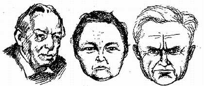 В возрасте около тридцати лет черты лица делаются менее-подвижными, но более выразительными, (рис. 26, 27). В зрелости черты лица проявляются и углубляются; страсти, пережитые чувства оставляют отчетливые следы: вначале легкие и беглые, потом эти отпечатки становятся глубже и, наконец, остаются неизгладимыми (рис. 26, 27) В старости глаза теряют свой блеск и живость; кожа на лице становится сухой и морщинистой, сохраняет одинаковый цвет; мышцы — лишаются своей силы и подвижности, поэтому все черты опускаются и стягиваются к подбородку, что придает часто лицу вид печальный и недовольный.