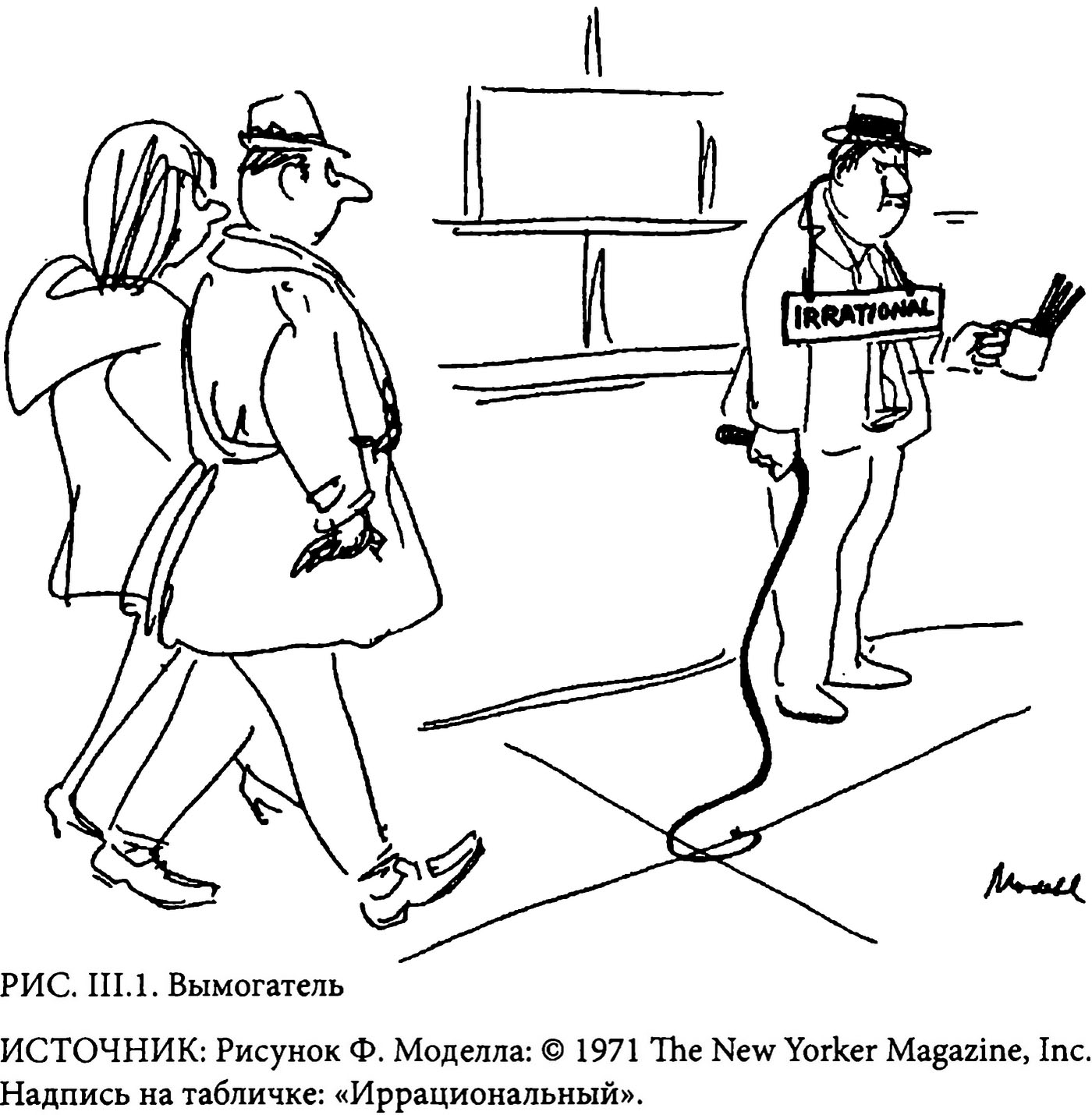 Но как сообщить о чем-то столь субъективном, как самые сокровенные чувства человека? Уж точно недостаточно просто заявить о них. («Я — честный. Верьте мне».) Важная деталь механизма обязательства, о котором я думаю, хорошо схвачена в карикатуре Фрэнка Моделла, представленной на рис. III.1.