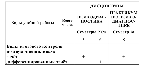 4. Общий совокупный объём дисциплин и виды учебной работы по дисциплинам «Психодиагностика» и «Практикум по психодиагностике» для очной формы обучения (специальность 030300.62 – Психология, квалификация выпускника – «бакалавр психологии»)