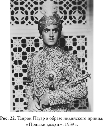 В любовных романах двадцатого века врачи особенно почитались. Если в фильме говорилось о наличии у героя медицинского образования, это только добавляло ему привлекательности. Зрители в 1935 году так симпатизировали капитану Бладу и считали его честным человеком в том числе и потому, что им сообщили: раньше герой Эррола Флинна был врачом, «целителем, а не убийцей», бескорыстно добрым человеком; пиратом же он стал только после того, как его незаслуженно обвинили в государственной измене[515]. В фильме кинокомпании 20th Century Fox «Пришли дожди» (The Rains Came, 1939) Тайрон Пауэр сыграл майора Раму Сафти, невероятно красивого военного врача, который помимо всего прочего оказался еще и индийским принцем[516]. Толстый слой бронзовой пудры позволяет ему изобразить предмет любовного интереса скучающей английской красавицы, леди Эдвины Эскет (в исполнении Мирны Лой), которая чувствует притяжение к этому «бледно-медному Аполлону» с первого же взгляда. Эдвину привлекают социальные и духовные ценности Сафти: он поэт и одновременно с этим миссионер. Выдуманный Ранчипур, где происходит действие фильма, страдает от землетрясений, наводнений и чумы. В фильме есть ужасающая сцена, которая символизирует катастрофический конец империи: огромная статуя королевы Виктории оказывается по горло погруженной в бушующие потоки воды. Столкнувшись с этими невзгодами, жаждущая любви Эдвина бескорыстно занимает место медсестры, чтобы помогать Сафти, но вскоре сама заболевает чумой и умирает, избежав тем самым трудностей, связанных с межрасовыми отношениями. Тайрон Пауэр практически тянул весь фильм на себе, вживаясь в образ шикарной мужественности под маской бронзового Аполлона: героя войны, бескорыстного хирурга, душевного советника, украшенного драгоценностями индийского принца. Его образ вышел за рамки представлений о мужчине мечты и стал воплощением объекта сексуальных желаний.