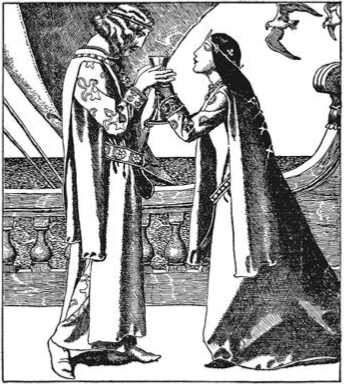 Мать Изольды приготовила любовный напиток для короля Марка, чтобы они с Изольдой выпили его в брачную ночь, и передает напиток няне Изольды – Брангене. Вот в чем здесь секрет: яд и любовный напиток – это одно и то же. Любовь приносит такие смертные страдания, излечить которые не под силу никакому врачу. Та же женщина, что привела Тристана в Ирландию, приготовив отравлявший его яд, теперь приготовила любовный напиток. Но предназначался он для Изольды и Марка.