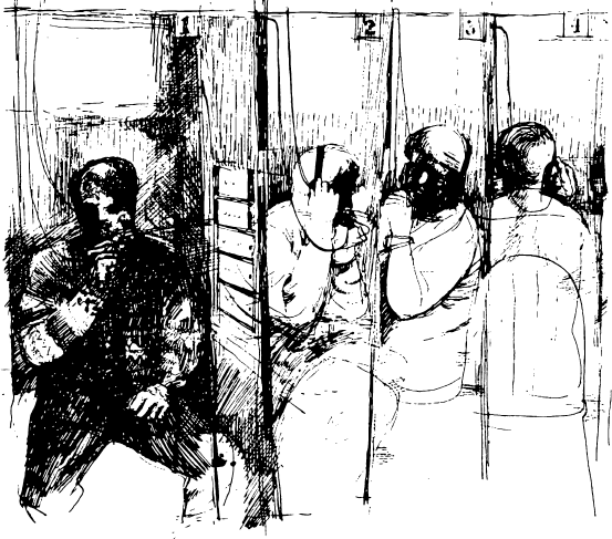 Рис. 6. Испытуемый-норвежец во время эксперимента по изучению влияния группы. (Рисунок Роя Сьюпериора)