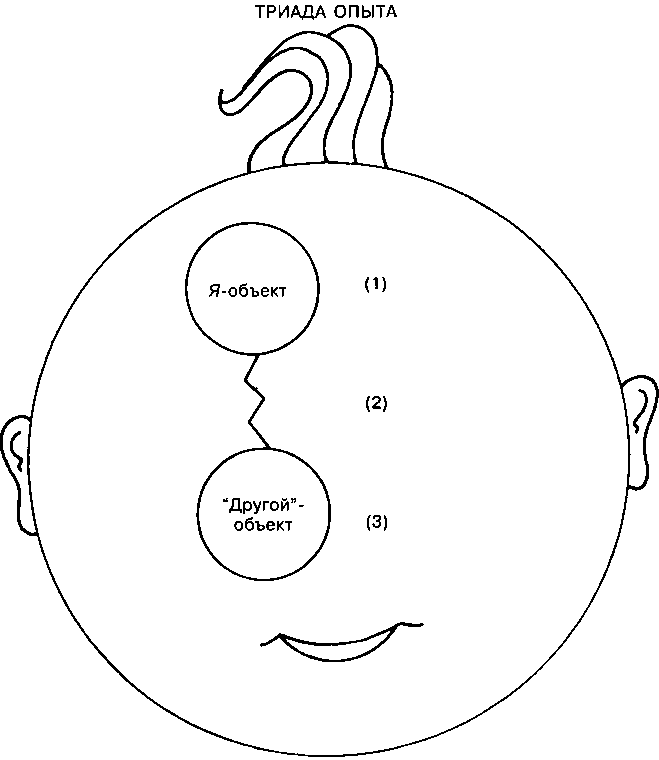 Во внутреннем мире репрезентация Я или 37-объект (1) связан с репрезентацией другого, или «другой’’-объектом (3). Хранящиеся в памяти следы этой диады ассоциируются с соответствующей аффективной окраской (2); все вместе составляет триаду опыта.