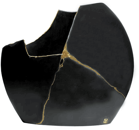 Это решающий шаг. После долгой подготовки мастер кинцуги наконец берет предмет в руки, чтобы склеить и вернуть ему первоначальную целостность.