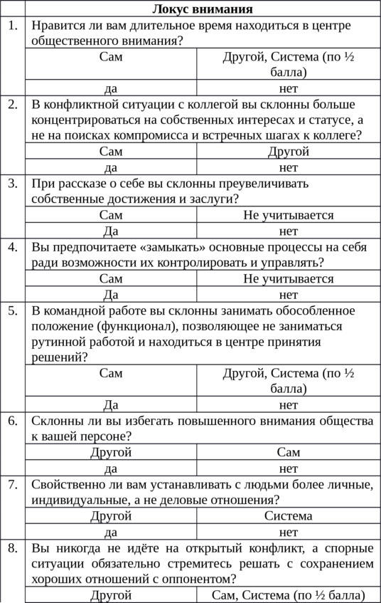 Метапрограмма «Локус внимания» Выявление и диагностика