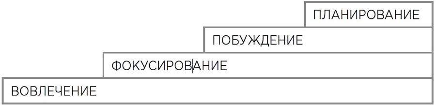 Для определения данных четырех процессов мы выбрали форму отглагольного существительного (в оригинале был выбран герундий. – Прим. ред.): «engaging» (вовлечение), «focusing» (фокусирование), «evoking» (побуждение) и «planning» (планирование). Данная книга организована вокруг этих четырех процессов.