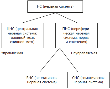 Первый – это ЦНС – центральная нервная система, к которой относятся головной и спинной мозг. Это управляемая нами система.
