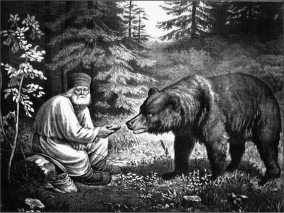 Святые Сергий Радонежский, Франциск Ассизский, Герасим Иорданский со зверями