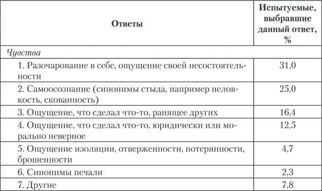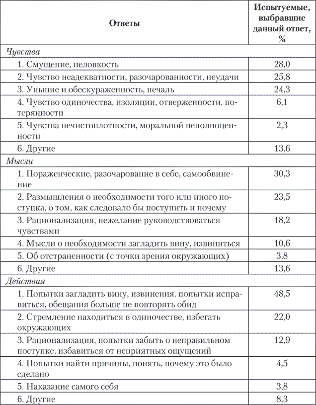 Последствия переживания стыда показаны в табл. 5.2.
