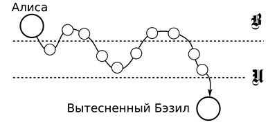 Бэзил как посылал Алисе либидо, так и посылает. Алиса отвечает тем же, но ее гонцам приходится преодолевать настоящую полосу препятствий. Амбивалентность восстановилась, но симметрии больше нет. Либидо от Алисы к Бэзилу течет медленнее, чем от Бэзила к Алисе. И развернуть поток вспять невозможно. Вообще. Прямой доступ сознательной Алисы к вытесненному Бэзилу закрыт. Только огородами-пароходами.