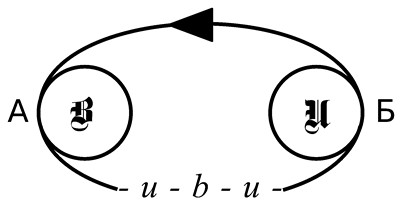 Рис. 6.7. Классический случай сублимации. По верхней дуге либидо проходит без препятствий (из бессознательного в сознание). Нижняя дуга отягощена цепочке вида u-b-u, поэтому здесь либидо движется значительно медленнее.