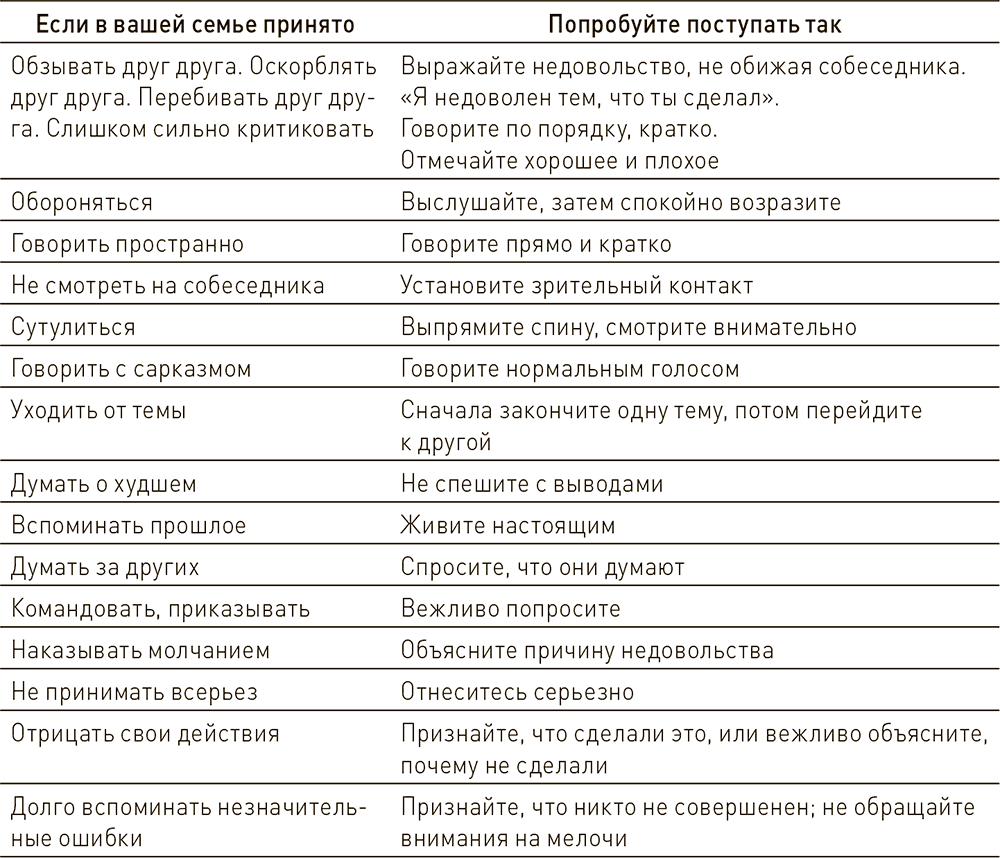 — Работайте над навыками общения. Ничто не убивает разговор с подростком быстрее, чем оскорбления, сарказм и нежелание выслушать другую точку зрения (даже если ребенок использует именно эту схему). В табл. 24.1 представлен перечень способов эффективного общения.