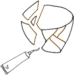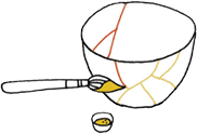 Соедините. Приготовьте и нанесите клеящее вещество (муги-уруси, смесь муки и лака уруси) шпателем на края обоих осколков, прижмите эти осколки друг к другу.