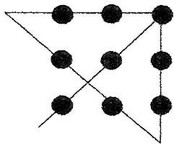 20. Многие испытывают трудности в решении этой задачи из-за предположений, которыми они руководствуются. Частое предположение, возникающее из-за иллюзии ‘квадрата’, составленного из точек, способствует тому, что многие остаются в пределах ‘квадрата’. Когда мы осознаём, что можем выйти за квадрат, мы можем решить эту задачу следующим образом:
