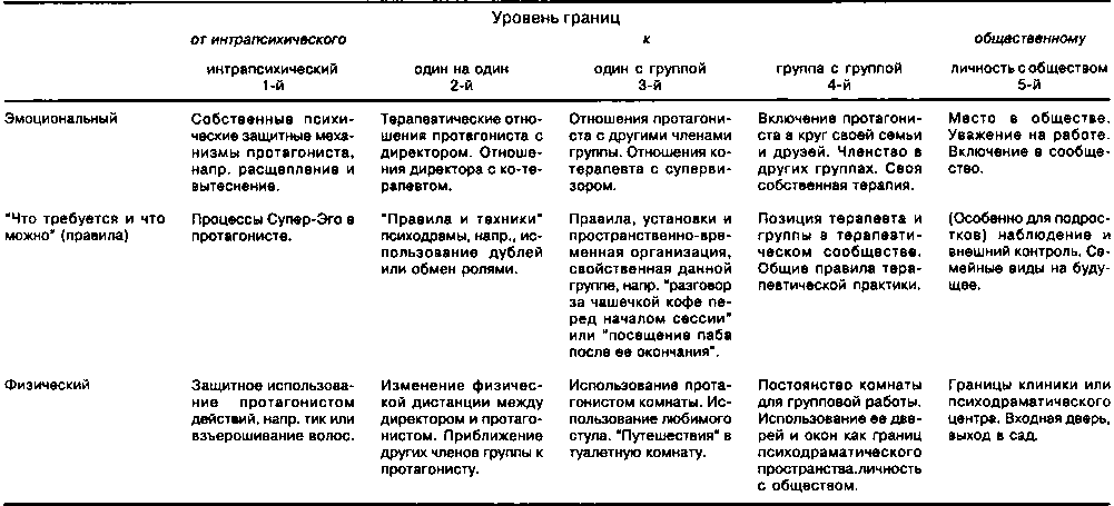 Итак, в этой короткой части сессии тревогу (протагониста, директора и группы) помогли снизить техники, принадлежащие к каждой из трех перечисленных в таблице категорий: эмоциональные и физические методы, а также правила и допущения.