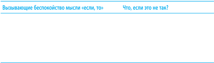 В левом столбце запишите несколько примеров вызывающих беспокойство мыслей «если, то» о том, что может произойти. В правом ответьте на вопрос: «Что, если это не так?» Например, если то, чего вы боитесь больше всего, не произойдет, какое неопасное событие могло бы произойти вместо этого?