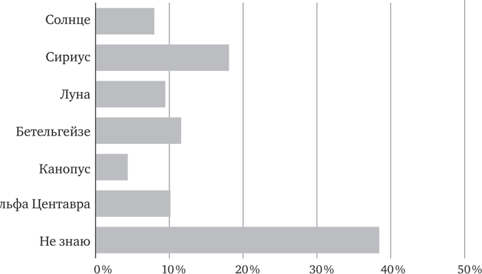 Вы можете возразить, что большинство людей не имеют представления о том, что Солнце – это звезда (хотя этот факт, согласно «Единым образовательным требованиям», обязан знать каждый первоклассник). Вторая по яркости звезда ночного неба называется Канопус (в США ее зачастую не так просто увидеть). И только 4 % выбрали этот ответ.